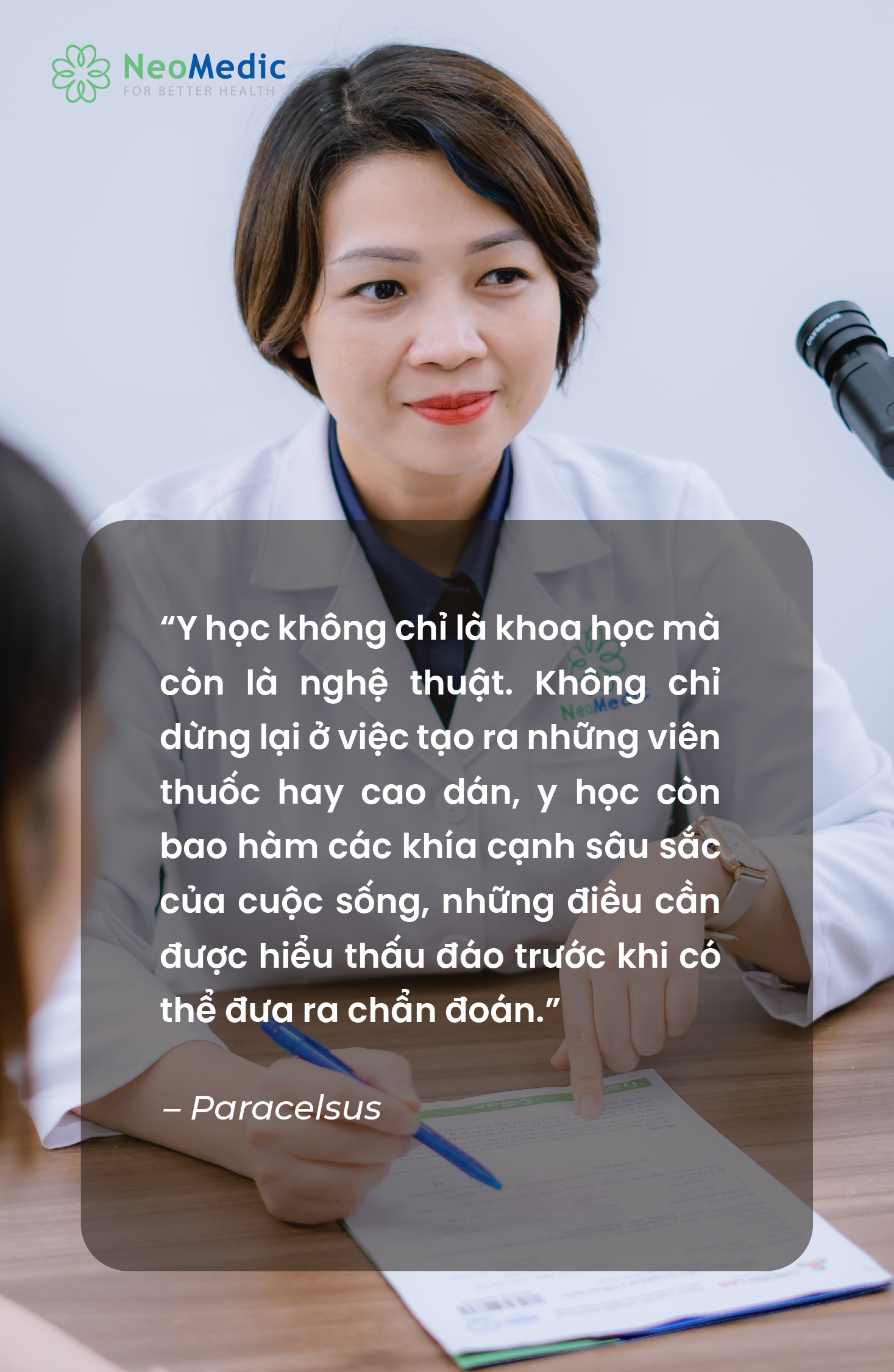 Tạm dịch: “Y học không chỉ là khoa học mà còn là nghệ thuật. Không chỉ dừng lại ở việc tạo ra những viên thuốc hay cao dán, y học còn bao hàm các khía cạnh sâu sắc của cuộc sống, những điều cần được hiểu thấu đáo trước khi có thể đưa ra chẩn đoán.”
